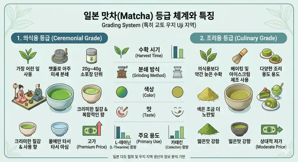 3. 일본 맛차(Matcha)의 등급 체계와 가격 (Grading System)